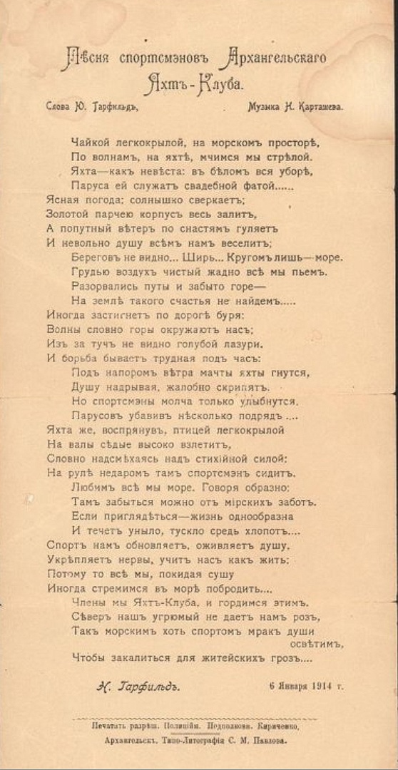 Пѣсня спортсмэновъ Архангельскаго Яхтъ-Клуба